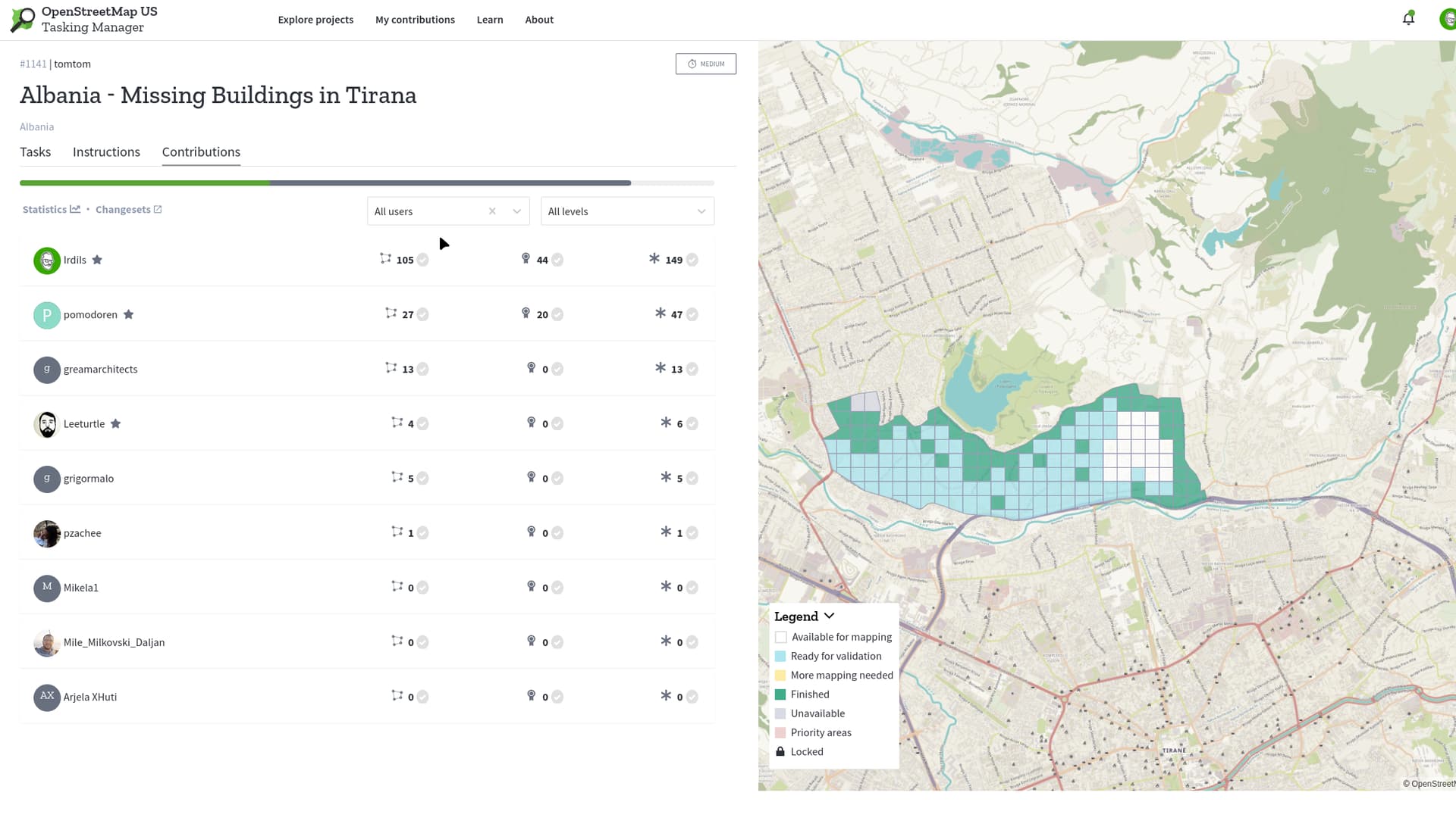 Së bashku me @pomodoren kemi vendosur të takohemi online për të hartëzuar territorin rreth liqenit të Paskuqanit. OSM US Tasking Manager